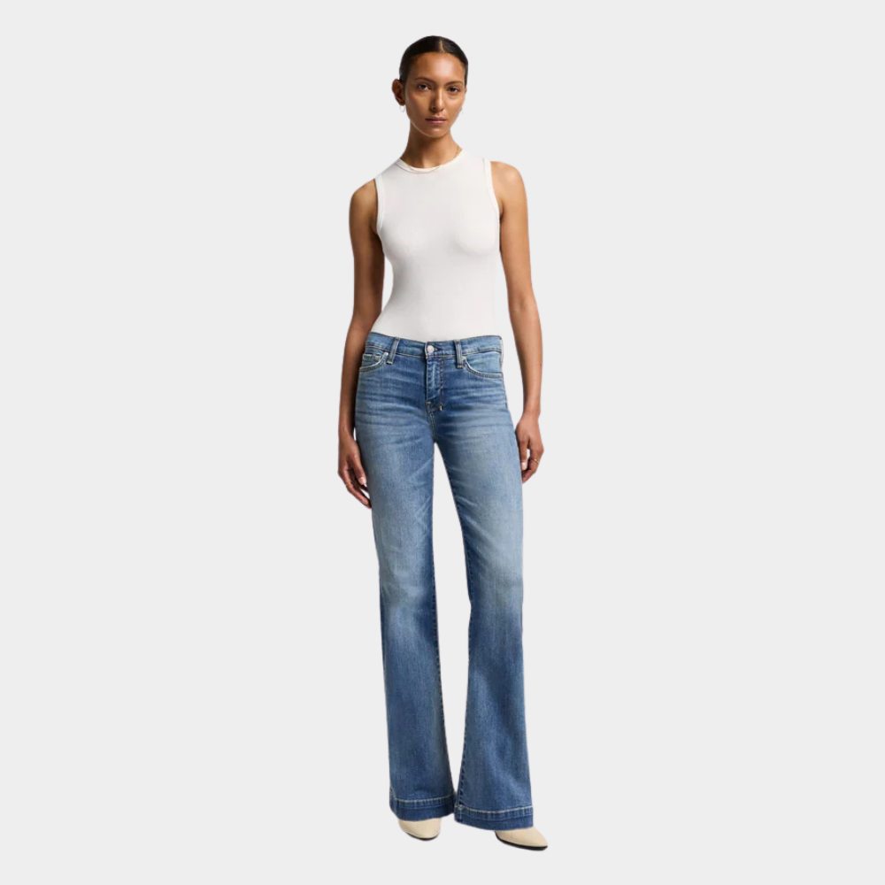 Crafted from a classic cotton-spandex blend, this jean delivers authentic denim structure with just the right amount of stretch. Finished with signature 7 For All Mankind back pocket embroidery and a zip fly closure, it’s a staple that pairs beautifully with boots, heels, or sneakers.