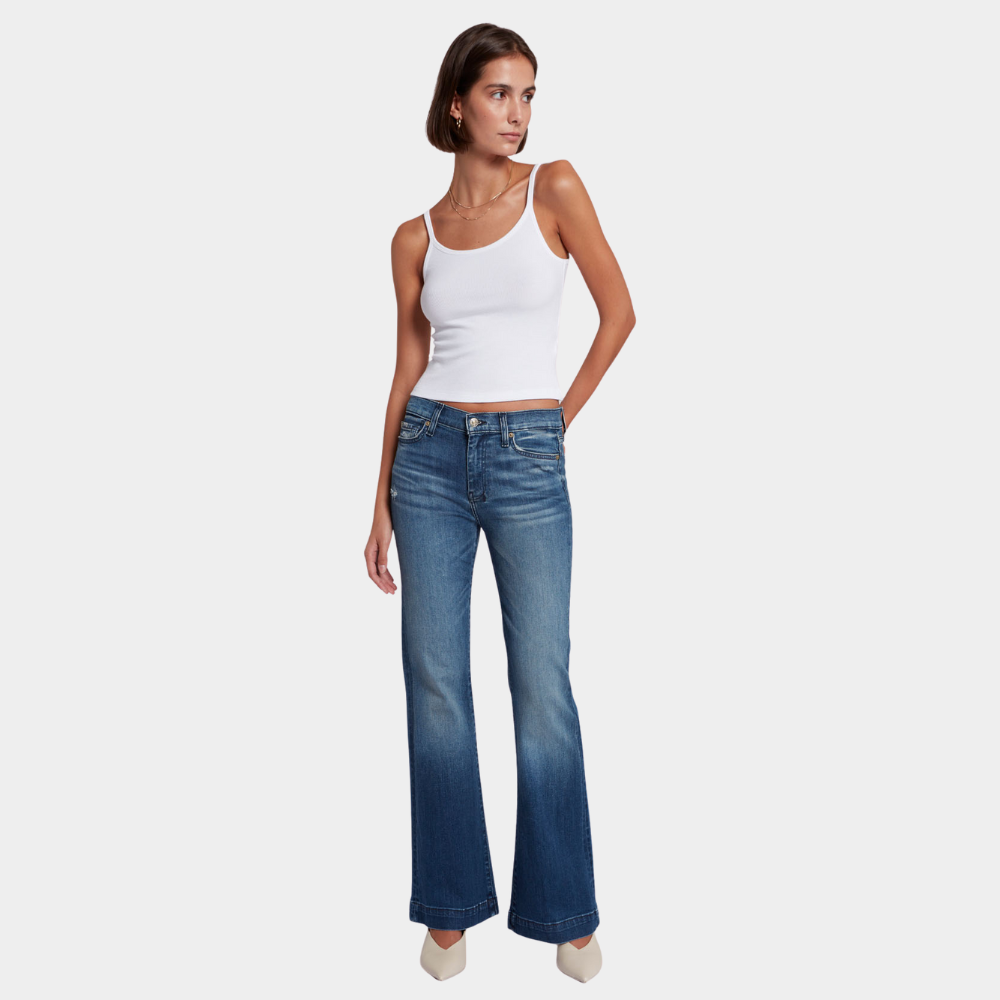 Upgrade your denim game with Series 7 soft stretch denim, designed to feel like your favorite jeans from day one. Each of our fits and washes offers versatility so you don’t have to overthink your outfit every morning. Skip the break-in struggle and upgrade your closet with soft, premium denim. 7 For All Mankind jeans bring fresh energy to a signature silhouette, made for women who love the look and feel of well-made denim with a flattering wide-leg bootcut fit.